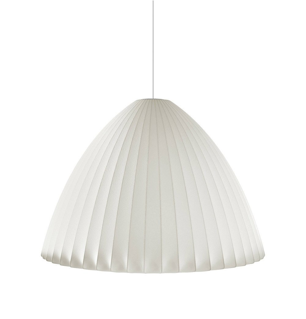 polymer cocoon coating material over steel wire-frame, finished with metal chrome ceiling canopy